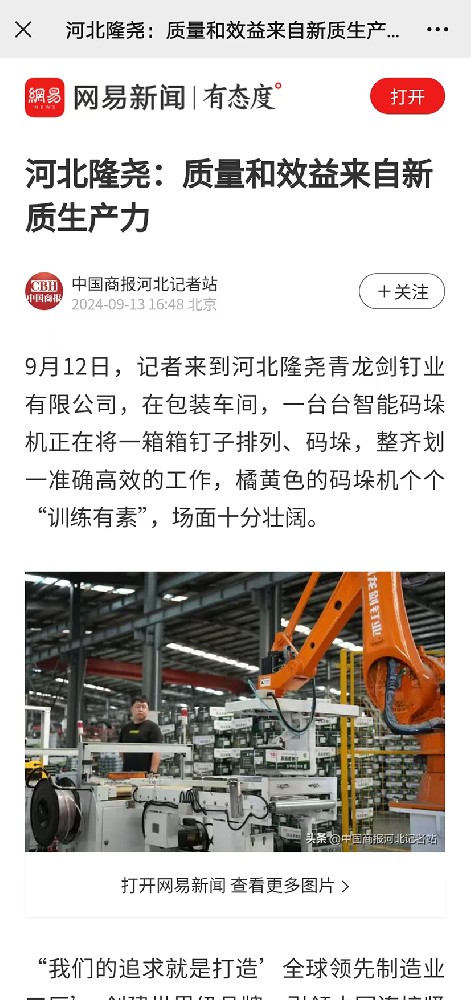 近日,青龍劍釘業(yè)憑借在科技創(chuàng)新及產(chǎn)品研發(fā)領(lǐng)域的卓越表現(xiàn),吸引了眾多媒體的關(guān)注與報道。此次報道不僅是對公司過往成就的高度認(rèn)可,更為未來的發(fā)展注入了強勁動力。《邢臺新聞聯(lián)播》以“【青藍(lán)邢動 逐夢泉城】 馬群澤:“釘”住質(zhì)量 “創(chuàng)”造輝煌”為題,詳細(xì)闡述了青龍劍公司總經(jīng)理、首席質(zhì)量官馬群澤對公司產(chǎn)品質(zhì)量關(guān)的嚴(yán)···[詳情] 2025-02-23 16:18:42
