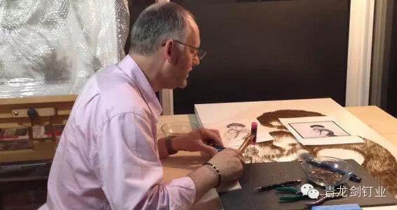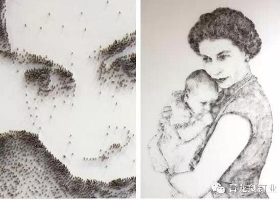 英國沃靈頓市的一名52歲的藝術(shù)家用錘子和釘子制作出了一幅幅美麗的名人肖像,其中包括瑪麗蓮·夢露、“披頭士”,甚至是英國女王。